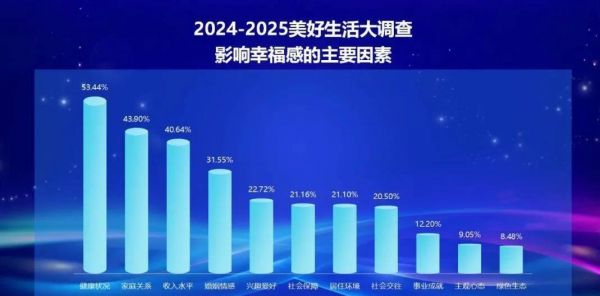 過去19年,中國人對幸福的定義徹底變了。 央視《美好生活大調(diào)查》追蹤近200萬家庭發(fā)現(xiàn):收入對幸福的影響下降近5%,健康(53.44%)、家庭(43.90%)和收入(40.64%)構(gòu)成新“幸福鐵三角”。 超五成一線城市居民把健康當(dāng)首要目標(biāo),而“興趣愛好”和“社交關(guān)系”對幸福感的貢獻(xiàn)飆升,甚至催生“養(yǎng)生奶茶續(xù)命”“廣場舞社交”等新現(xiàn)象。
