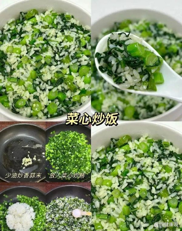 菜心炒飯清新可口,菜心的脆嫩與米飯的香氣完美結(jié)合。簡單的調(diào)味,能夠保留菜心的原汁原味,營養(yǎng)豐富,適合想要清淡飲食的人士。