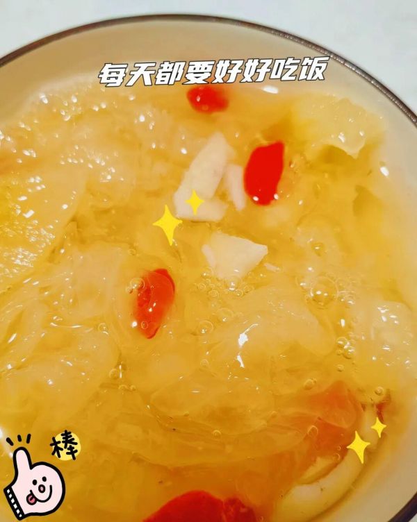 這道湯是秋天的補水湯,銀耳出膠后特別潤,梨和百合都是清肺的,喝著能緩解秋燥。我之前皮膚干得掉皮,喝了一周,皮膚就不那么干了,喉嚨也舒服,早上起來不覺得口干舌燥了。