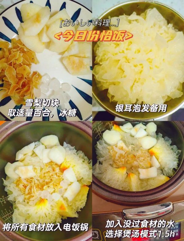 銀耳一定要泡透,根蒂要去掉,不然煮不爛;百合別煮太久,不然會化成泥。