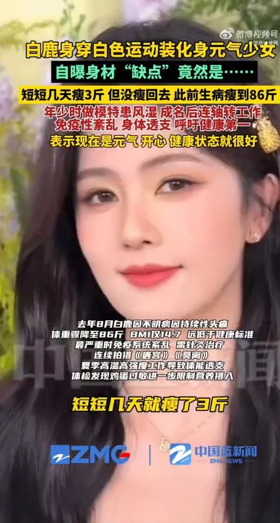 鏡頭前的白鹿一身白色運(yùn)動(dòng)套裝,活力十足。然而,在這“元?dú)馍倥毙蜗蟮谋澈?,她透露的卻是身體發(fā)出的警報(bào)。據(jù)悉,高強(qiáng)度、連軸轉(zhuǎn)的工作節(jié)奏已經(jīng)讓她的免疫系統(tǒng)拉響警報(bào),身體長(zhǎng)期處于透支狀態(tài)。那句“沒(méi)瘦回去”的補(bǔ)充,更是道出了在光鮮外表下,維持特定體形所帶來(lái)的無(wú)形壓力。