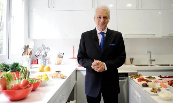 他是皮埃爾·杜坎(Pierre Dukan),雖然照片里他的領(lǐng)帶莫名歪了,但一頭白發(fā)搭配筆挺的西裝,和藹可親的笑容加上專注的眼神,在明亮的廚房里,他雙手有力地握在一起,給人一種權(quán)威的感覺。