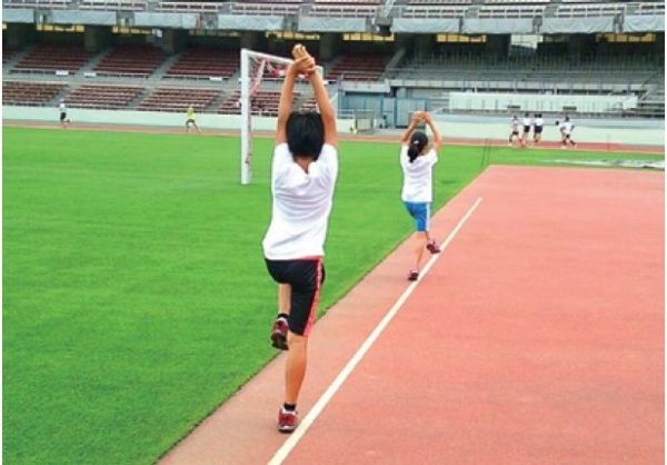 圖為參加田徑名人賽。另外,在琦玉田徑名人賽中,本院作為企業(yè)應援,擔任「受傷診療室」一職。 圖為正在教導賽跑教室的孩子「交叉步行」。