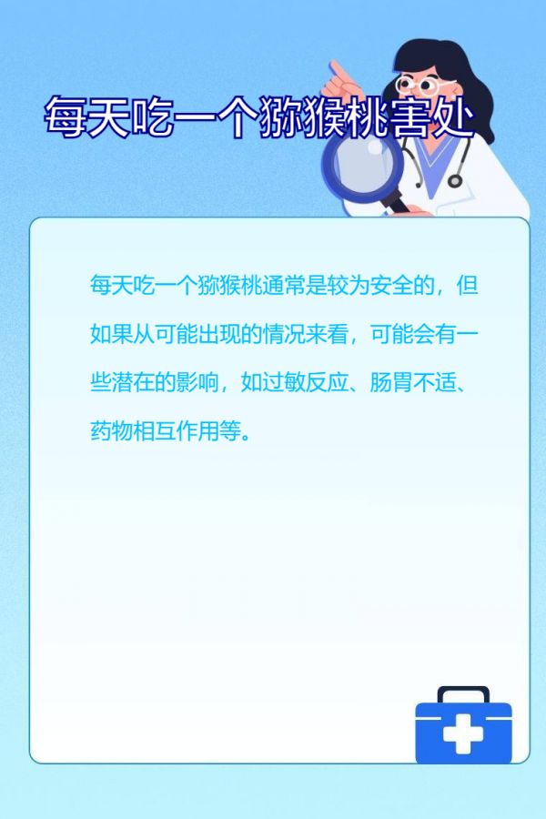 每天吃一個獼猴桃通常是較為安全的,但如果從可能出現(xiàn)的情況來看,可能會有一些潛在的影響,如過敏反應(yīng)、腸胃不適、藥物相互作用等。