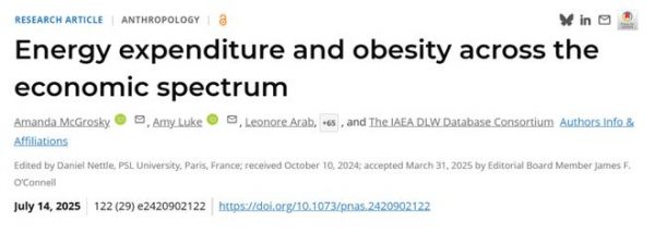 ①McGrosky A, Luke A, Arab L, et al. Energy expenditure and obesity across the economic spectrum. Proc Natl Acad Sci U S A. 2025;122(29):e2420902122. doi:10.1073/pnas.2420902122