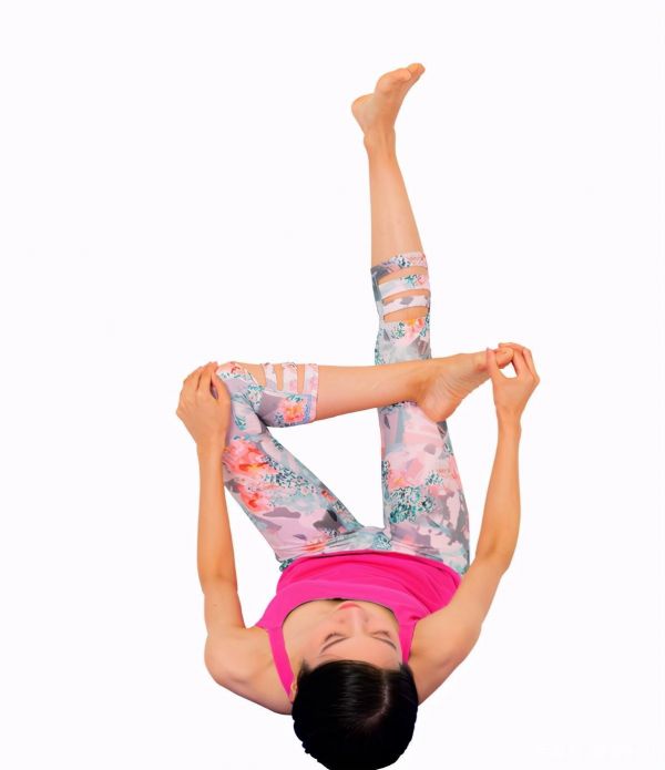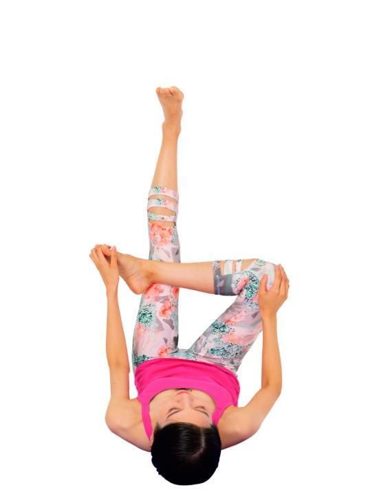 抬起雙腳靠在墻上,臀部貼著墻壁。右腳膝蓋屈起后,腳踝靠在左腳上。右腳腳趾和左手手指交握,轉(zhuǎn)動腳踝。