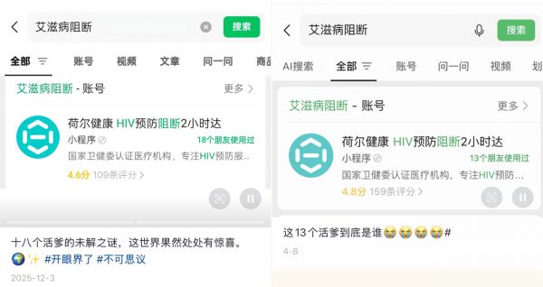 2024 年 2 月,一場關于“多少微信好友使用過 HIV 預防阻斷 2 小時達”的討論,讓荷爾健康意外被推上風口浪尖。有網(wǎng)友表示,在微信中搜索相關關鍵詞,彈出的“荷爾健康”小程序會顯示使用過的好友數(shù)量,并稱這些好友“臟了”。相關討論在社交媒體發(fā)酵后,荷爾健康小程序單日訪問量暴增,但誤解與恐慌也隨之蔓延。