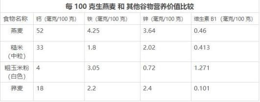 從微量營養(yǎng)素的角度,燕麥當中的維生素 B1,以及礦物質(zhì)鈣、鐵、鋅的含量在谷物當中都是前列。