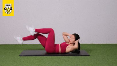 動作2:空中腳踏車 建議進(jìn)行5組,1組15個