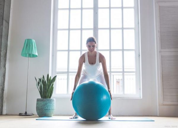 2. 將一個平衡球放在腹部上方,雙手抱住球向左側(cè)滾動。