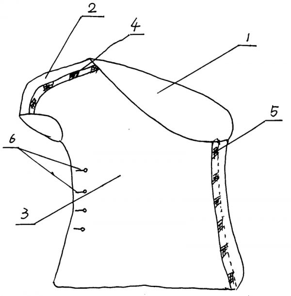 醫(yī)用束胸可用于乳腺外科術(shù)后幫助傷口恢復。例如吉林大學中日聯(lián)誼醫(yī)院乳腺外科主任醫(yī)師田鴻鈞教授發(fā)明的束胸衣,為單肩汗衫結(jié)構(gòu),束胸衣的肩部和另側(cè)體部側(cè)面為前、后兩片開口式結(jié)構(gòu),肩部和體部的兩側(cè)同時展開為整體的片狀,開口兩側(cè)設有連接搭扣 [15]。彈力衣包扎法包扎確切,不易滑脫,簡單易行,方便對壓迫部位的病情觀察,可以調(diào)節(jié)局部壓力,既能有效地控制皮下積液,又不增加皮緣(瓣)壞死的發(fā)生率,同時對患者的呼吸運動和體位限制性很小,患者的舒適度明顯增加 [16]。見圖片田鴻鈞束胸示意圖 [17]。