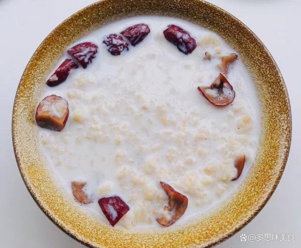食材:牛奶100克、燕麥片35克、紅棗4顆