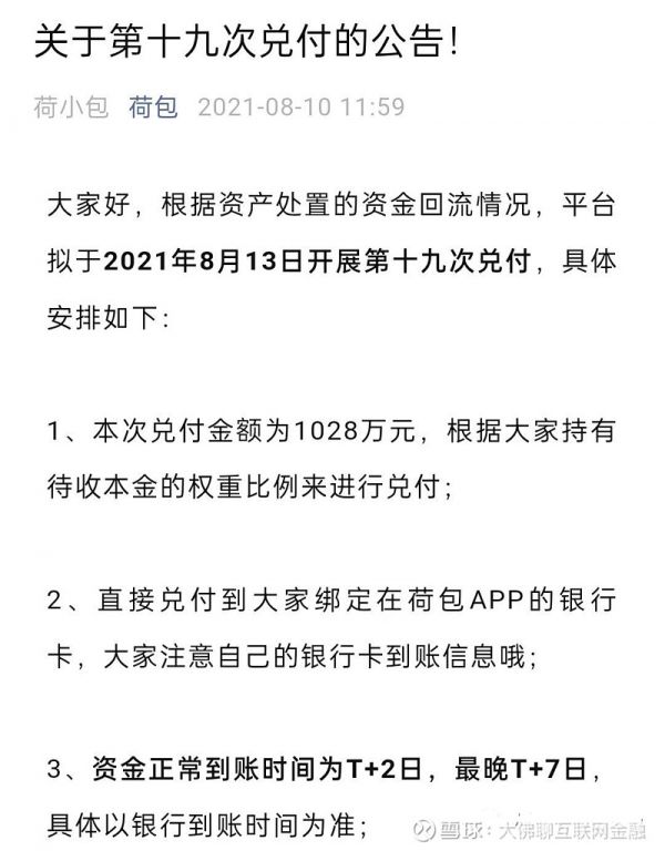 當時荷包金融和利嘉集團債務(wù)協(xié)議約定,利嘉集團對荷包金融的債務(wù)本息共83億,在簽署后分三年償還,所以當時荷包金融給出借人的兌付方案是,預(yù)計在不超過3年的時間內(nèi)完成兌付。