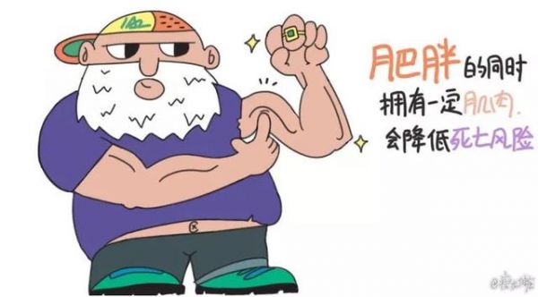 什么意思呢?胖子的死亡風(fēng)險(xiǎn),較正常人高,但如果他肌肉多,力量大,就能降低死亡風(fēng)險(xiǎn)。