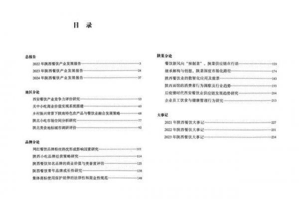 《陜西餐飲產(chǎn)業(yè)發(fā)展報(bào)告(2022-2024)》由陜西省商務(wù)廳指導(dǎo),陜西省餐飲聯(lián)合會(huì)、中國(guó)國(guó)際食學(xué)研究所、西安歐亞學(xué)院工商管理學(xué)院聯(lián)合研創(chuàng)。
