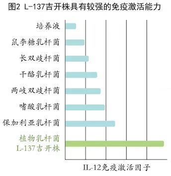 L-137吉開株極為特殊,菌株有效成分脂壁酸 (Lipoteichoic acid, LTA) 含量是一般菌株的 2~6倍,能較其他菌株誘導(dǎo)約2~10倍的IL-12。此外,L-137的脂壁酸結(jié)構(gòu)是由較多的丙氨酸 (Alanine) 組成,能穩(wěn)定結(jié)構(gòu)、不易產(chǎn)生變性、氧化和降解,因此對(duì)熱、酸、堿的耐受性突出[5]。