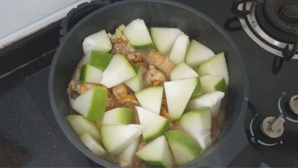 第七步:蓋上鍋蓋,調(diào)中火燜12分鐘,冬瓜燜時(shí)會(huì)出水,所以我們加水的時(shí)候不要加太多,不然汁太多,就不夠香了。