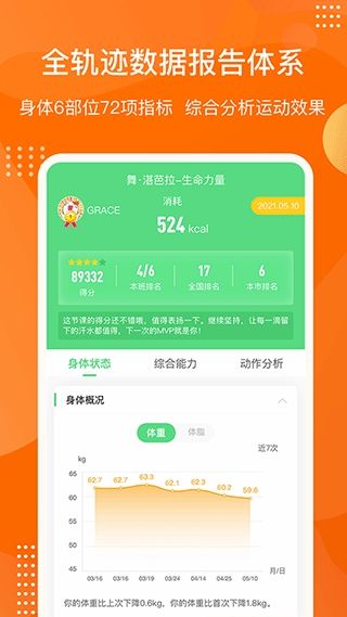 每上一節(jié)課,你都會(huì)獲得本節(jié)課的運(yùn)動(dòng)規(guī)劃報(bào)告。報(bào)告涵蓋全身6部位72項(xiàng)指標(biāo)綜合分析,綜合評(píng)估用戶的體態(tài)、運(yùn)動(dòng)能力和運(yùn)動(dòng)姿態(tài)進(jìn)行全面系列化評(píng)估分析,提供全場(chǎng)景、全過程、全軌跡的數(shù)據(jù)報(bào)告。
