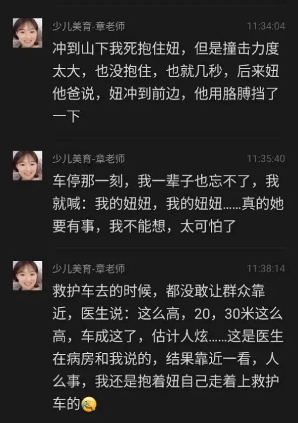 車輛從二三十米高的山上如流星般墜落,沿著陡峭的山坡翻滾而下,現(xiàn)場一片狼藉,車身與山石猛烈撞擊,樹木被強(qiáng)大的沖擊力撞斷,車頂被撞得粉碎。