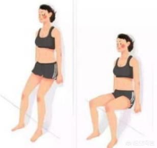 2、靠墻深蹲:雙腳分開,腳跟距墻壁約60厘米,背部靠墻,挺直腰背,緩慢下蹲,腳跟不要離地,也可以雙手握拳前伸。大腿和小腿的角度大于90度,保持呼吸3~5秒,還原站姿。 動(dòng)作開始時(shí)要慢,可逐漸加快,5~10個(gè)/組,每次做1-2組。