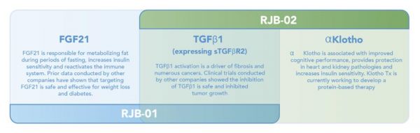 Rejuvenate Bio 公司最初的研發(fā)管線基于三個(gè)長(zhǎng)壽相關(guān)基因——FGF21、αKlotho 和 sTGFβR2。這三個(gè)基因的功能和安全性已經(jīng)經(jīng)過(guò)了大量驗(yàn)證。