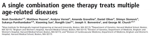 2019年11月,喬治·丘奇團(tuán)隊(duì)在《美國(guó)國(guó)家科學(xué)院院刊》(PNAS)上發(fā)表了一篇題為:A single combination gene therapy treats multiple age-related diseases 的研究論文【4】。并根據(jù)這項(xiàng)研究成果創(chuàng)建了一家名為 Rejuvenate Bio 的抗衰老的公司【5】。