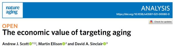 2021年7月,Nature Aging 期刊發(fā)表來(lái)自倫敦商學(xué)院 Andrew Scott 等人的文章:The economic value of targeting aging。