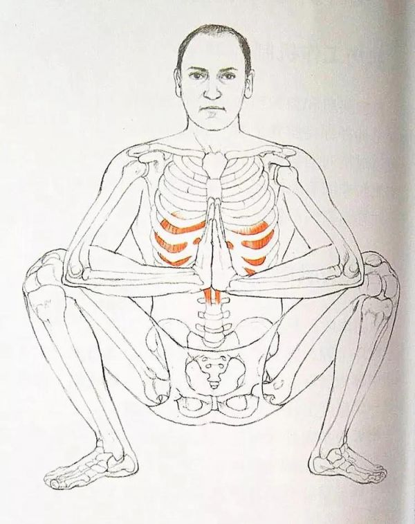在這個(gè)姿勢(shì)中很容易涉及到盆底肌,其協(xié)同收縮使得呼氣開(kāi)始,并放松一些骨,以回應(yīng)吸氣時(shí)膈肌產(chǎn)生的下壓力。