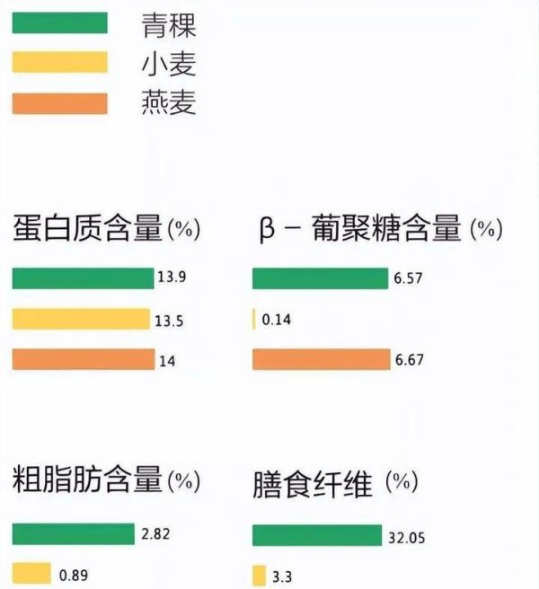 青稞被稱為“世界上最好的粗糧”。青稞的蛋白質(zhì)、脂肪和碳水化合物的平均含量分別為11.37%、2.13%和59.25%。青稞的膳食纖維含量是小麥的15倍。