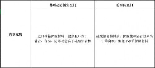 盼盼防盜門內填充物一般采用發(fā)泡或者硅酸鋁巖棉,保溫性、隔音性和防撞效果一般,而且盼盼大多數(shù)是專為房地產(chǎn)項目工程批量供應的工程門,這種門更確切的說屬于防火門,符合消防要求,但防撬性就不能與專業(yè)防盜門相比。德盾超防撬安全門一直是以零售為主,服務于中高端市場,對于選材的標準較高,也更考究。德盾超防撬安全門內填充物采用進口冰箱保溫材料——德國巴斯夫聚氨酯,這種材料在靜音、保溫、防霉功能上都是首屈一指的,健康且環(huán)保比硅酸鋁巖棉材質造價更高,效果更好。