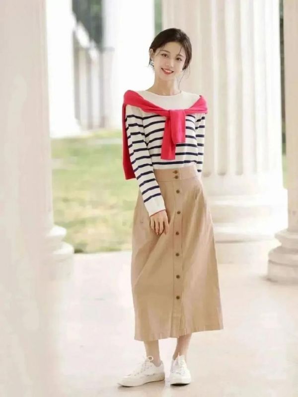 在全景或大場景的景別下拍初秋人像,可以選擇一些輕松的姿勢,比如側(cè)身、交叉腿、手臂自然下垂等等,這樣可以讓身體看起來更加舒展,從而起到顯瘦的效果。