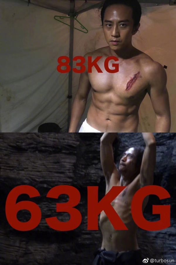 “境州”戲份殺青后,他又要為了“子虞”這一角色在2個(gè)月內(nèi)快速減重40斤。他每天嚴(yán)格遵守營(yíng)養(yǎng)師食譜,連續(xù)15天每天僅攝取800大卡,最少一天只吃2個(gè)雞蛋,在片場(chǎng)多次因?yàn)榈脱菚炑#詈篌w重成功減至63公斤。